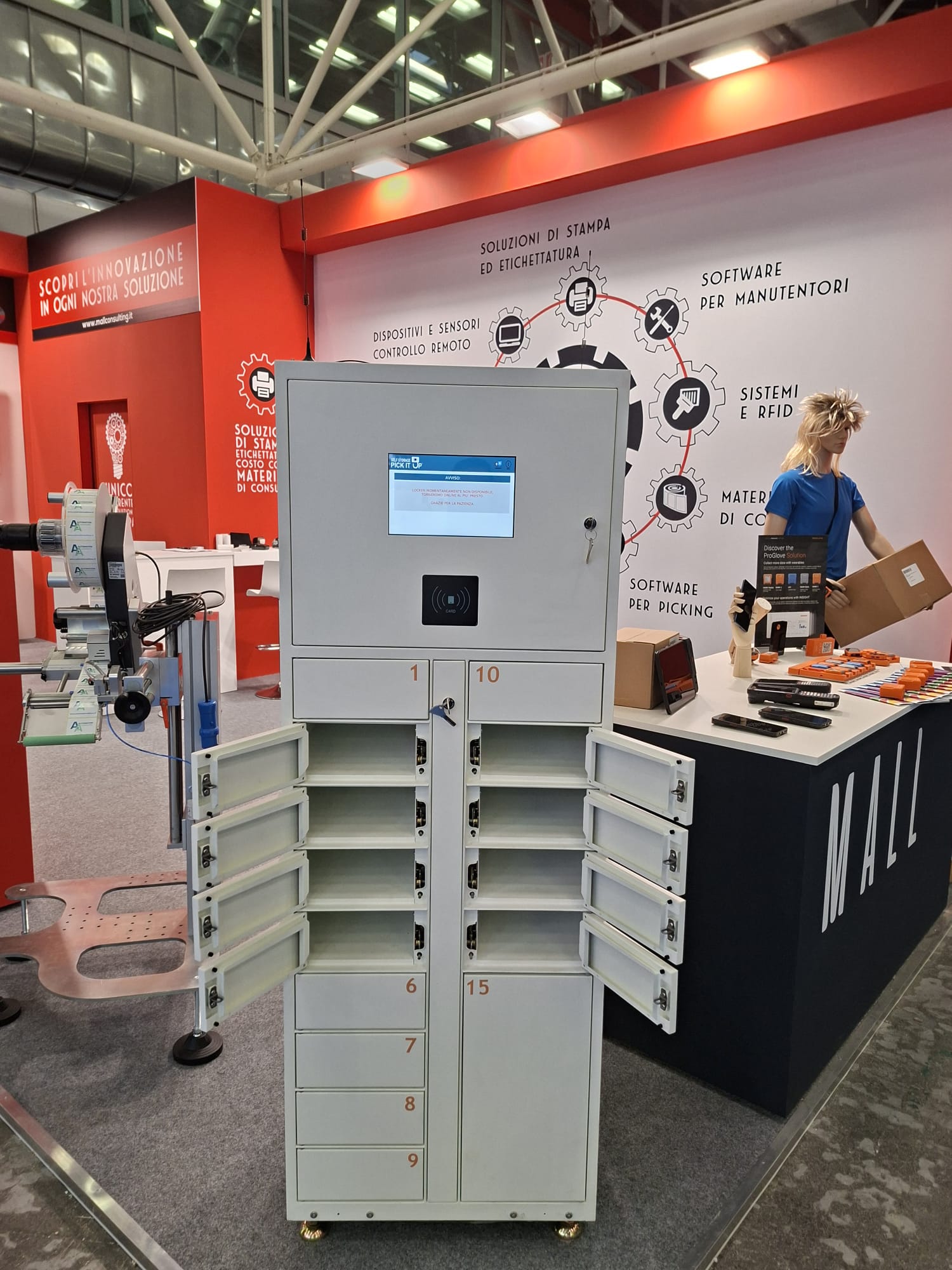 i lettori barcode Proglove, che permettono di fare picking a mani libere con più velocità e precisione e i LOCKER per ricarica e deposito di dispositivi elettronici, come terminali e stampanti portatili usati anche per la normale utensileria che, oltre a gestirne la ricarica, tracciano l'operatore che fa il deposito o il prelievo del dispositivo.